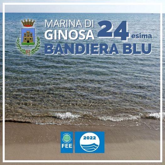 🙌Siamo Bandiera Blu!Questa è la 24^!📍#MarinadiGinosa è tra le 210 località balneari in tutta Italia e tra le 18 pugliesi del 2022 ad aver ottenuto